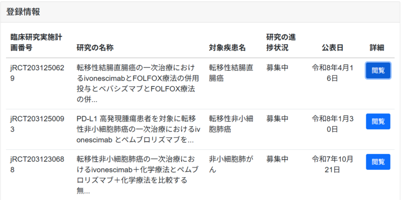 基本AIで調べた情報を元に、私自身でも日本の臨床試験情報などを調べてみました。
